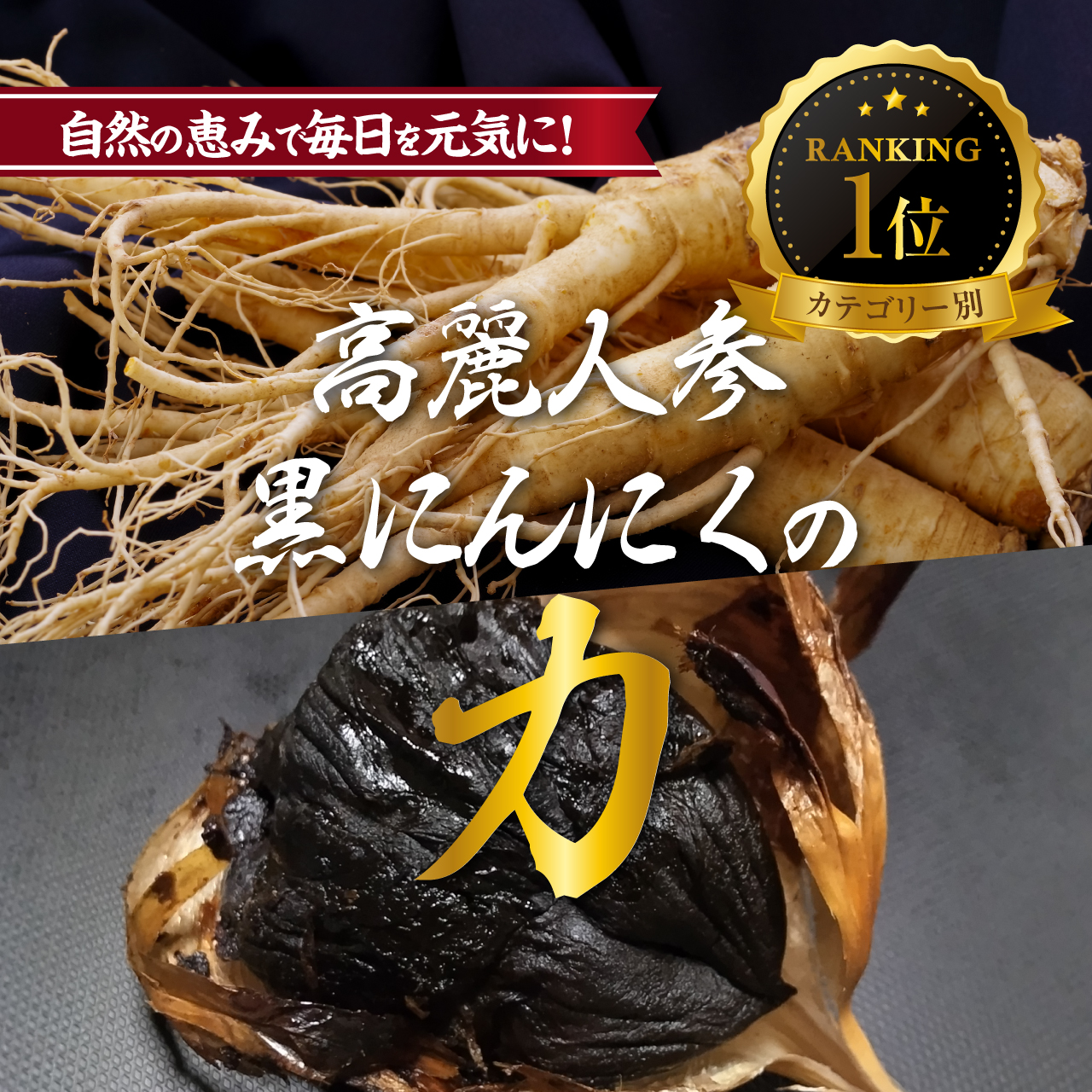 臭いなし・毎日続けられる自然のサプリ。国産熟成高麗人参と黒にんにくで、内側からパワーチャージ。