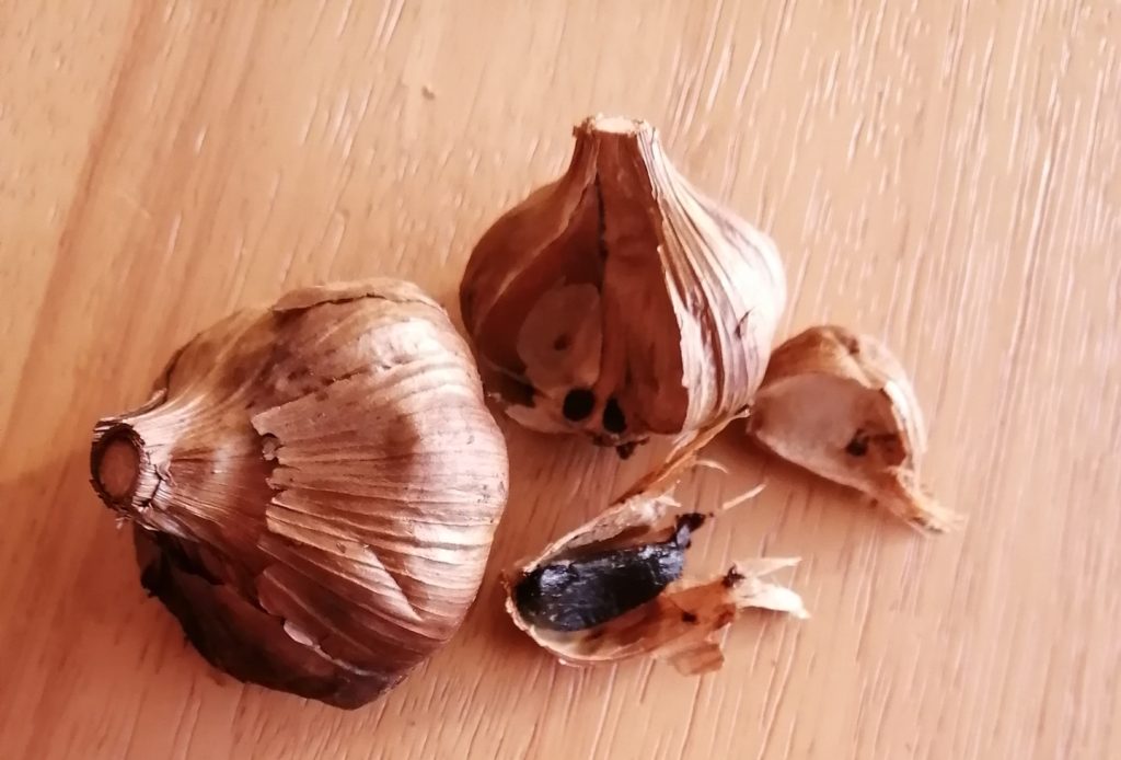 通常の生にんにくを一定期間、熟成・発酵させたものです。見た目は黒くなり、栄養価と健康効果が大幅に高まるのが特徴です。